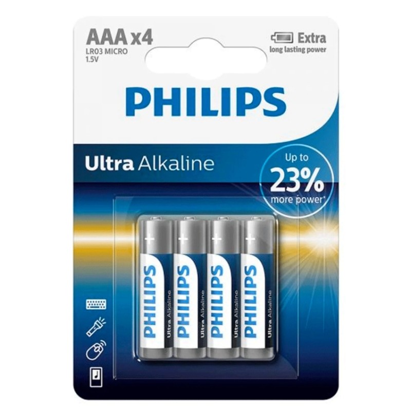 Mantenha seus aparelhos sempre com energia usando essas pilhas da Philips, esse pacote vem com 4 unidades de pilhas alcalinas AAA perfeitas para controles remotos, mouse e outros dispositivos! Compre as suas na Super Games!