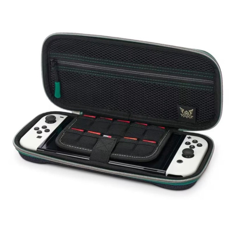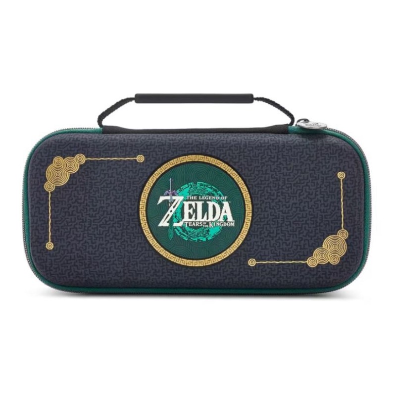 Um estojo compacto resistente, o case da PowerA apresenta revestimento externo resistente com alça emborrachada e puxadores de zíper duplos duráveis, aba protetora de tela com armazenamento para nove cartões de jogo, interior moldado com forro de feltro e armazenamento de malha com zíper e uma capa de proteção externa personalizada com o estilo do jogo Tears of Kingdom. Compatível com os modelos OLED, Switch e Lite. Oficialmente Licenciado pela Nintendo.