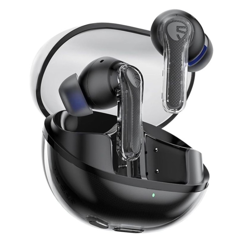 Os fones SoundPEATS Clear usam Bluetooth 5.3 para conexão estável e microfones duplos com ENC que reduzem ruídos externos em chamadas. Contam com drivers de 12 mm que garantem graves fortes e som equilibrado. Têm até 7 horas de uso por carga e 33 horas com o estojo. O modo Game reduz a latência para 90 ms, ideal para jogar no celular. O design transparente dá estilo moderno e diferenciado.