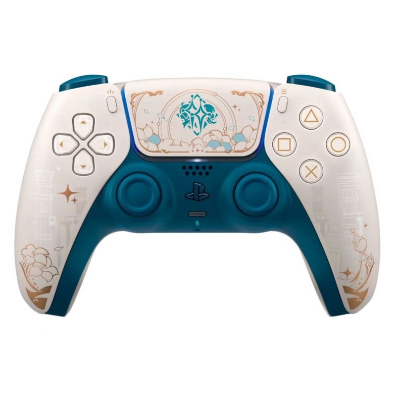 Esta edición limitada del control inalámbrico DualSense celebra el universo de Genshin Impact, presentando un diseño exclusivo inspirado en la elegancia de Inazuma y en el personaje Kamisato Ayato. El control combina la tecnología de punta de Sony, como la retroalimentación háptica inmersiva y los gatillos adaptativos, con una estética refinada en tonos azul y blanco, adornada con motivos florales y el emblema del clan.