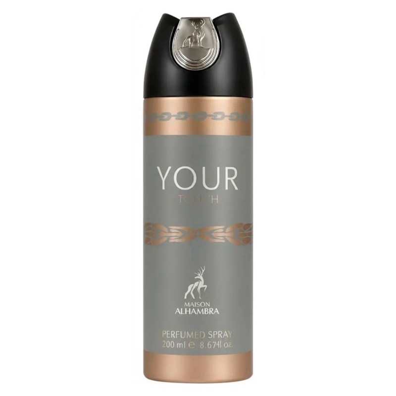 Elegancia acogedora con un toque sofisticado. El desodorante Your Touch abre con cardamomo picante, hoja de violeta, pimienta rosa y menta fresca. El corazón mezcla canela, lavanda y toques frutales de sandía y piña. La base finaliza con vainilla cremosa, castaña marcada, maderas nobles y ámbar, dejando un aroma femenino intenso y acogedor, ideal para quien desea una presencia refinada.