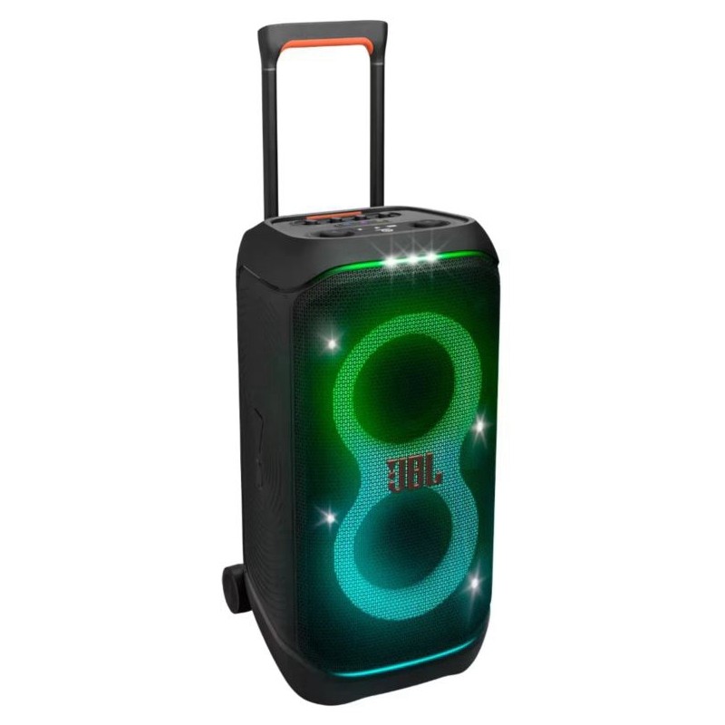 El Altavoz JBL Party Box Stage 320 es el complemento perfecto para cualquier fiesta o evento, proporcionando movilidad y facilidad de transporte gracias a su asa telescópica y ruedas anchas y resistentes. Incluye entradas duales para micrófono y guitarra, permitiendo que seas el DJ o la estrella de la música en vivo. Certificación a prueba de salpicaduras IPX4. La tecnología AI Sound Boost de JBL mejora la calidad sonora, garantizando que la música suene clara y potente en cualquier volumen.